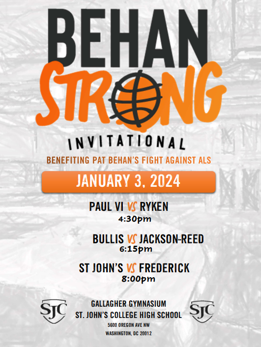 On Wednesday, January 3rd, 2024, Behan Strong and St. John's College High School will be hosting the second annual Behan Strong Invitational. This event includes three games.